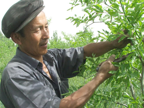 2006-05-26楼兰红枣开始进入夏季管理5月22日,新疆若羌县铁干里克乡农民库尔班·努尔正在红枣地里进行夏季管理。 近年来,新疆若羌县充分利用电视、电教网络,编制近1万册《若羌县红枣栽培技术规程》(维汉)等科技资料,先后举办红枣技术培训班100多期,培训农民19000多人次,传播科技实用技术,提高农民种植红枣科技含量。目前,全县上万名农民都熟练地掌握了红枣种植管理技术。 [详细]