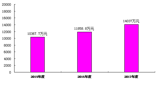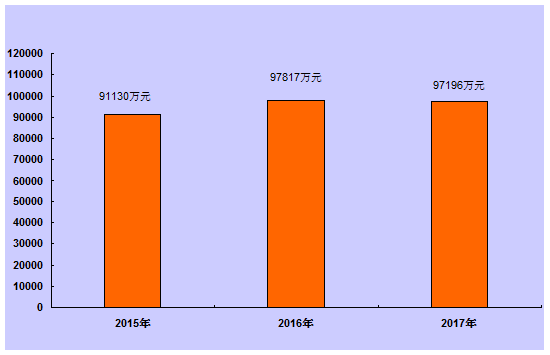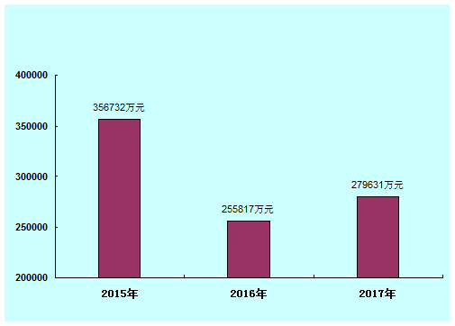 图五:2015年-2017年若羌县社会消费品零售总额完成情况