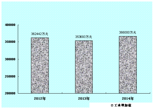 2014年,预计实现工业增加值366000万元,其中:500万元以上工业企业实现增加值349936万元;500万元以下工业企业实现增加值3064万元;个体工业企业实现增加值13000万元。