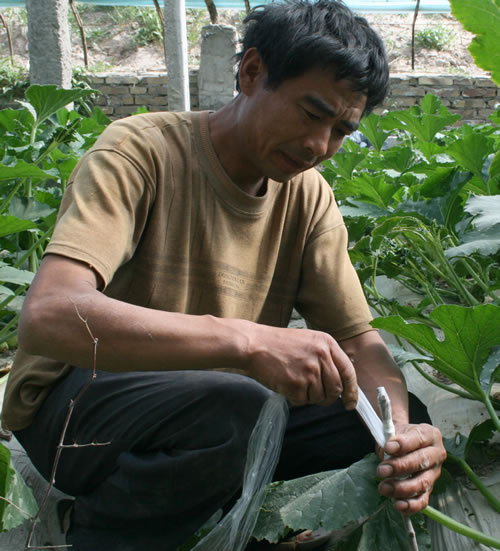 如图为若羌县吾塔木乡农民梅正伍正在自家的蔬菜大棚里嫁接红枣