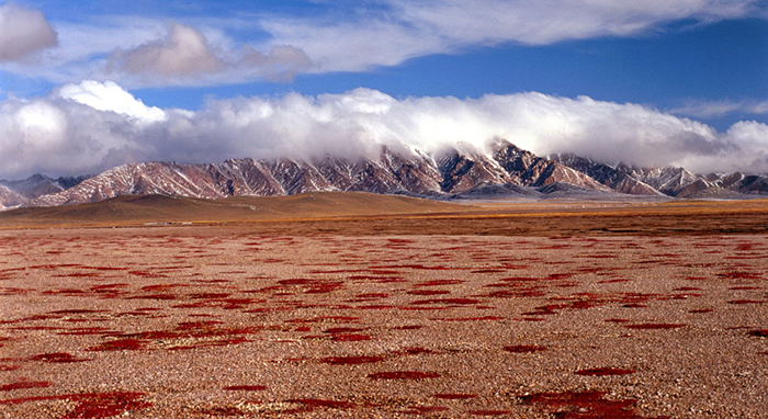 在阿尔金山自然保护区的东南部,平卧着一个浩淼大湖,它东西长37公里,南北宽7.6公里,面积250平方公里。湖面海拔高达4708米,湖深2~10米,主要由泉水河、玉浪河及沿线的泉水汇集而成。该湖经卫星拍摄的影像看,头东尾西,形状恰似一条横卧的大鲸,故而名其曰“鲸鱼湖”。湖的东段七分之一处形成了一道长达7.5公里的自然砂砾堤,将湖水自然地分隔成东西两部分。堤宽约200米,高出湖面2~4米,中间有缺口,两侧之水可以互通。东半湖因有玉浪河大量的冰川融水注入而形成淡水湖,每年夏季都有无数的棕头鸥和赤麻鸭等飞禽在此觅食繁育、营巢度夏;西半湖因无淡水补给,天长日久,蒸发强烈,湖水含盐量几乎达到饱和状态,是一个没有生命的死湖。由于两湖水质差异明显,自然形成了东湖“鸥歌鸭舞”、西湖“万马齐喑”的鲜明对比,因此人们又把鲸鱼湖叫作“阴阳湖”。它是世界内陆高山湖泊中的一种罕见的湖泊类型。它就像向高原上的一颗蓝色明珠,镶嵌在阿尔金山自然保护区的南端,给这里增添了奇光异彩。