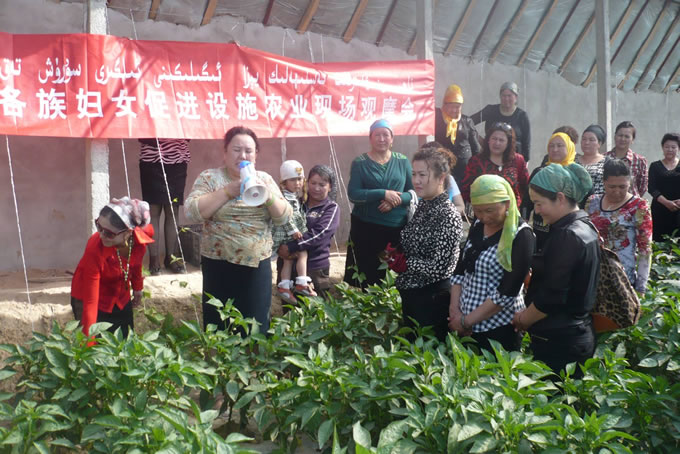 若羌县召开各族妇女促进设施农业现场观摩会暨妇女民族团结座谈会