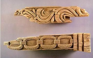 丝绸之路开通以后,东西方往来与日俱增,西域楼兰空前繁荣,世界几大文明在此激荡、碰撞、交汇、融合。楼兰人在接受外来文明时并不是原封不动地照搬,经过深刻浸润后,楼兰文化艺术以独特新颖的面貌引领风骚。木雕艺术独特罕见,其中小河出土的木雕人面像,无论从造型手法和尺寸、比例都呈现一种模仿真人的痕迹,在表现形式上体现自然主义风格,结合木雕特意夸张人物造型特征。墓地出土男性、女性生殖器木雕和一些可能具有性含义的木雕制品,总体以体现原始生殖崇拜为寓意。古墓沟墓地人物雕刻象征性地描绘出眼、鼻、嘴等部位,女性木雕胸部、臀部形态夸张在模拟自然的基础上,采用夸张、概括的方法表现出一种原始的性崇拜。以上两处遗址木雕揭示了。社会信仰是决定艺术创作方向的主要根据,可以看出女性在当时社会地位极高。楼兰、尼雅等地出土的木雕,图案多以人像、动物、花瓣为主,绘画风格与早期印度绘画中见到的风格非常类似。西域居民自古以来就有精湛的木雕艺术传统,而佛教传入的希腊化艺术和犍陀罗艺术,则赋予古老楼兰的木雕艺术以新的活力。