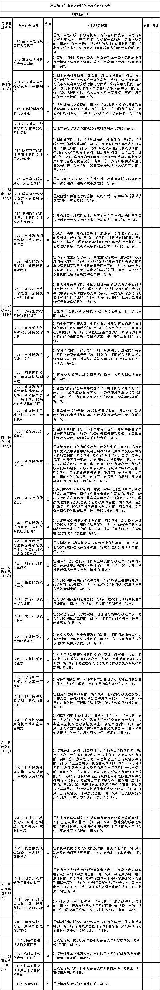 新疆维吾尔自治区依法行政考核评分标准(政府部门适用)