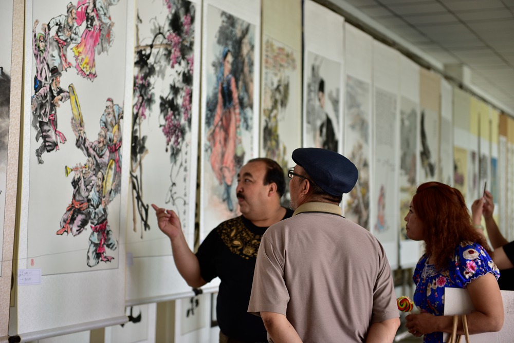 上图为居民观看大型文娱活动“若羌赛乃姆”