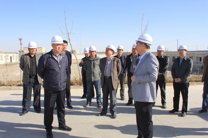 上图为县委书记党峰在玖圣热电公司调研