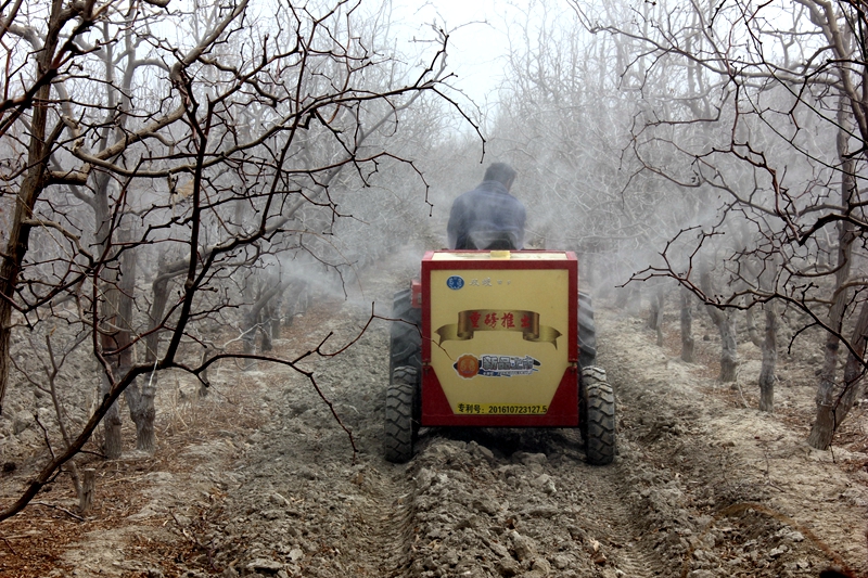 重塑农牧民科学的植保理念,除加强普及农业科技宣传外,加快先进的植保机械的作业演示十分必要。2017年3月25日,县农机部门联系了山东潍坊双蛟有限公司,在我县吾塔木乡吐户村张红山枣树地进行了风送式植保机械演示。演示中,仅需一人操作,喷雾的药液经风扇强风送出雾滴极小,枣树植保时省水省药。该机械体型较小,可配套在拖拉机上作业,适合县域内枣树作业环境。