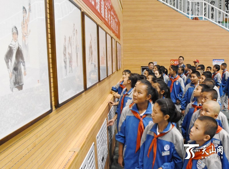 天山网讯(通讯员赵学龙摄影报道)9月20日上午,《沙丘翰墨·情系楼兰》著名画家施胜辰水墨人物画展暨文化援疆画作捐赠仪式在若羌县楼兰体育馆举办。仪式展出邢台市沙丘升沉、惠风堂主施胜辰先生为若羌创作的20幅画作,并向若羌县捐赠展出作品及500册名为《沙丘翰墨·情系楼兰》的画册。