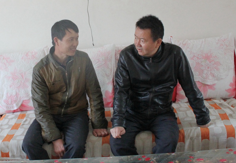 自上次走访后,陈栓改、吐尔逊•斯拉木两位贫困户的情况一直牵挂着宋书记的心。宋学斌首先来到陈栓改家中,了解近期生产生活情况,在看到羊圈里养的致富羊渐渐长大,得知陈栓改一家正抓好春耕黄金时段努力发展生产脱贫致富时,宋学斌很欣慰,鼓励他们继续通过自力更生改变生活现状,党委、政府也会继续帮助他们解决实际困难,帮助他们发家致富。在得知陈栓改的儿子正在上初三后,宋学斌详细了解孩子的学习情况,鼓励他努力学习,争取考上好的高中,并嘱咐陈栓改,孩子的中考成绩出来后,共同商量孩子的上学和就业等问题。在吐尔孙•斯拉森家,宋学斌详细查看了他的房屋情况,在得知他现在与父母住在一起,有自己想盖房的想法后,宋学斌当即协调县住建局了解情况,能否得到一些盖房补助等问题,并安排村里要持续关注,把他们的住房生活解决好。