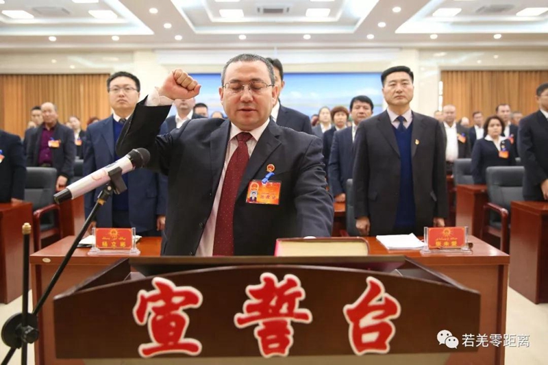 选举结束后,新当选的若羌县监察委员会主任阿里木·艾山,县人大常委会委员宋振军、蒋建英分别与参会人员见面,表态发言,并举行宪法宣誓仪式,会场响起热烈的掌声。