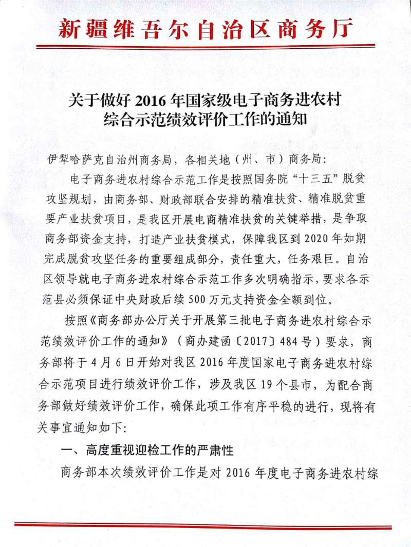 关于做好2016年国家级电子商务进农村综合示范绩效评价工作的通知