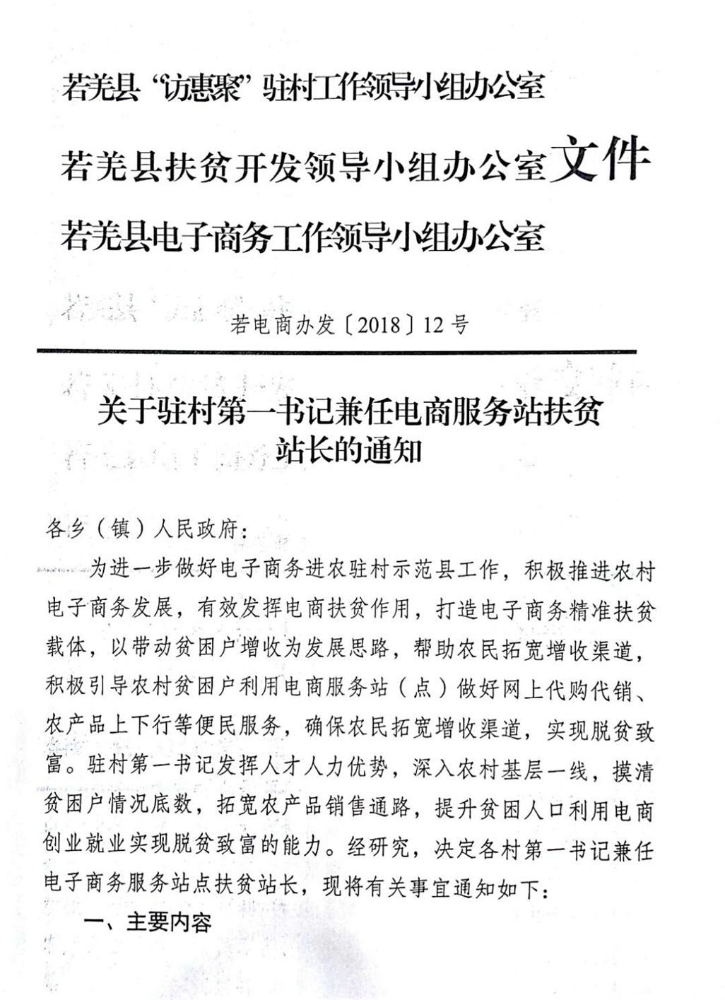 关于驻村书记兼任电商服务站扶贫站长的通知