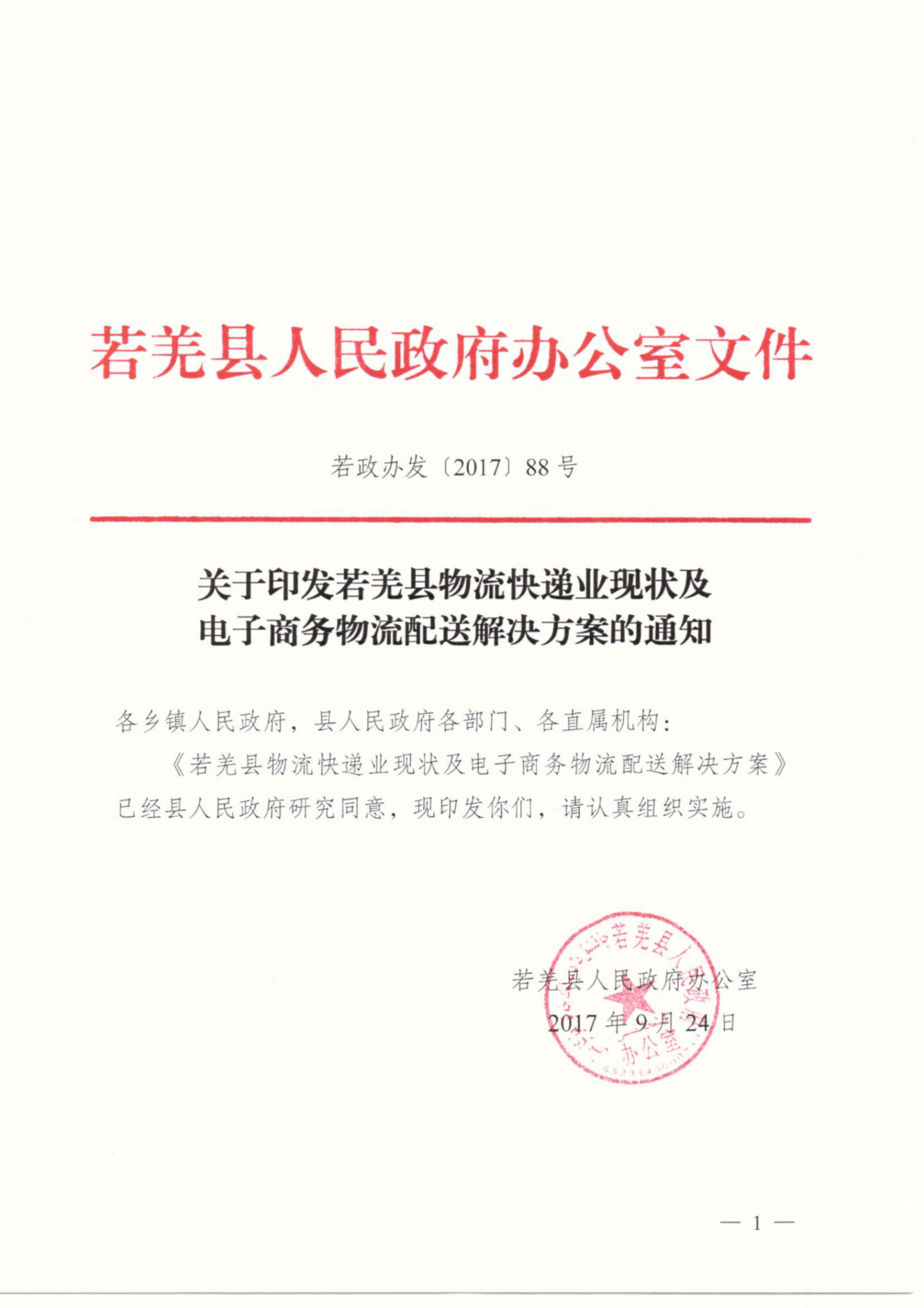 关于印发若羌县物流快递业现状及电子商务物流配送解决方案的通知