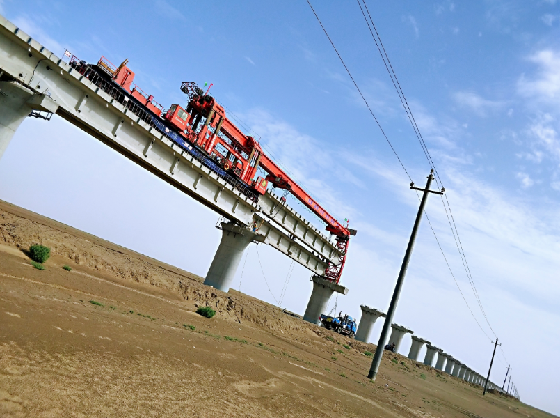 新疆格库铁路台特玛湖特大桥完成架设铺轨539孔