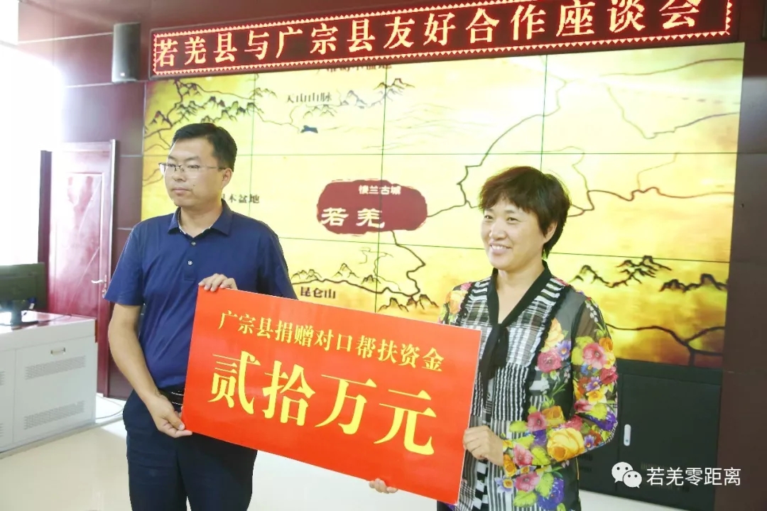座谈会上,若羌县与广宗县还签订了友好县协议,广宗县向若羌捐赠对口帮扶资金20万元,用于若羌县瓦石峡镇塔什萨依村重修村民活动广场和祁曼塔格乡祁曼塔格村120米深井项目建设,项目的实施将有效改善两个贫困村的生产生活条件,惠及贫困人口1000余人。