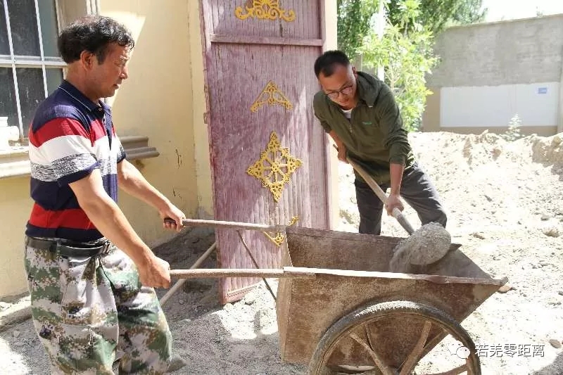 7月9日,若羌县铁干里克镇牧业村村民吐尔逊·吾加合买提给自己的亲戚李建峰打来电话,告诉他家里准备盖新房,亲戚一听喜出望外,急忙来到吐尔逊·吾加合买提家,走近一看,沙子和砖头已经运到家门口,地基也打好了,连忙挽起袖子和吐尔逊·吾加合买提一起拉沙子、搬砖头。