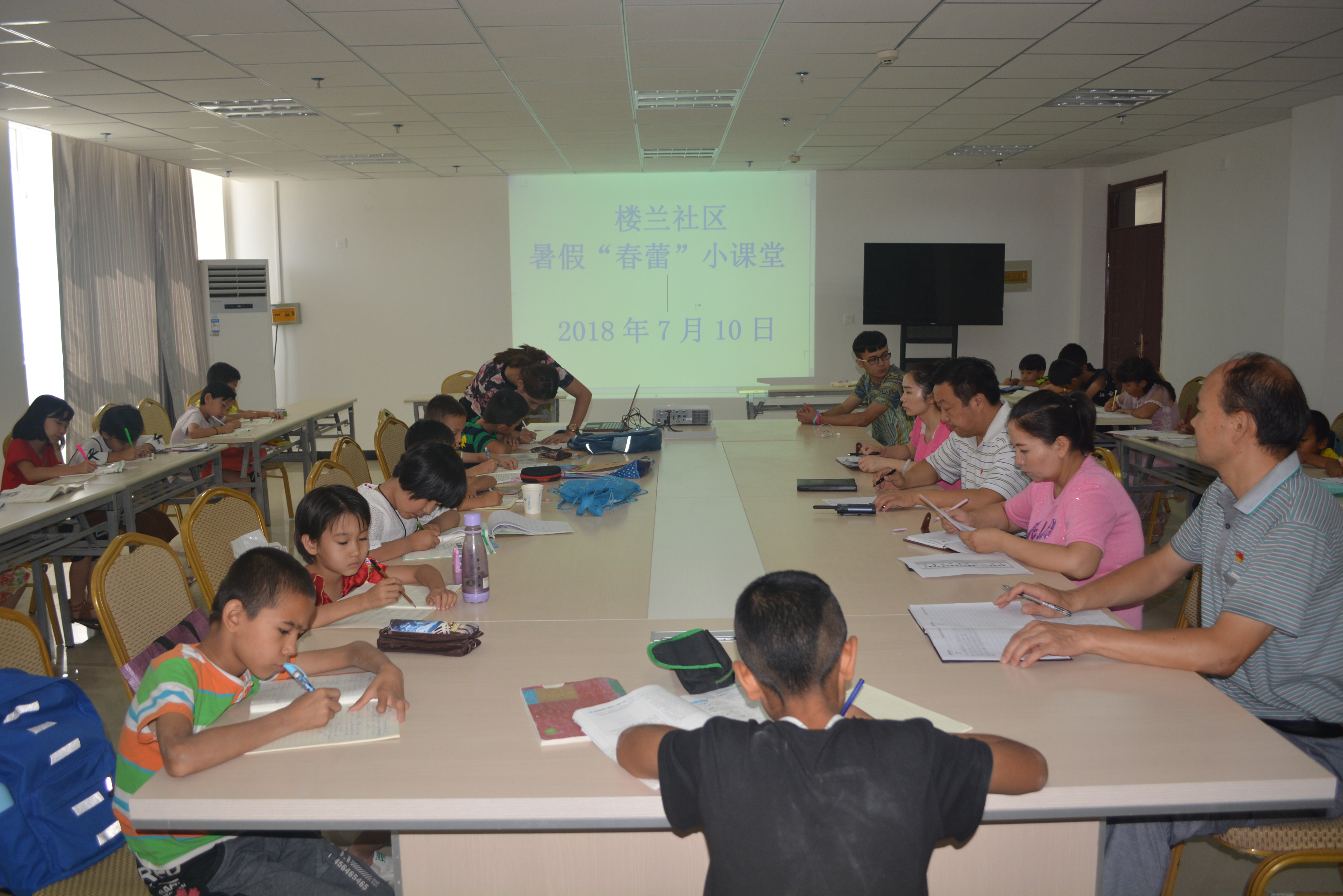 当前暑假来临,部分孩子在家沉迷于在手机、网络或电视节目,自主学习的效率不高;有的家长因文化水平偏低,无法为孩子辅导功课。因此,也为开展暑期返乡学生服务管理和社会实践活动,丰富返乡大学生的假期生活,在楼兰社区党支部、居委会及 “访惠聚”工作队的号召和组织下,就读于苏州大学、山东大学、新疆大学等大学的多名返乡大学生,近日来到楼兰社区组织开办了暑假“春蕾小课堂”,期间主要是为帮助小学生们梳理以前所学的课业知识,辅导孩子们做好暑假作业,并开展一些有益的活动。期间,每天上午安排2小时(10至12点),下午安排2小时(18至20点)。在开课仪式上,社区第一书记、工作队队长张根涛讲述了开办暑假“春蕾小课堂”的目的和意义,并且对任课的返乡大学生提出了希望和要求。